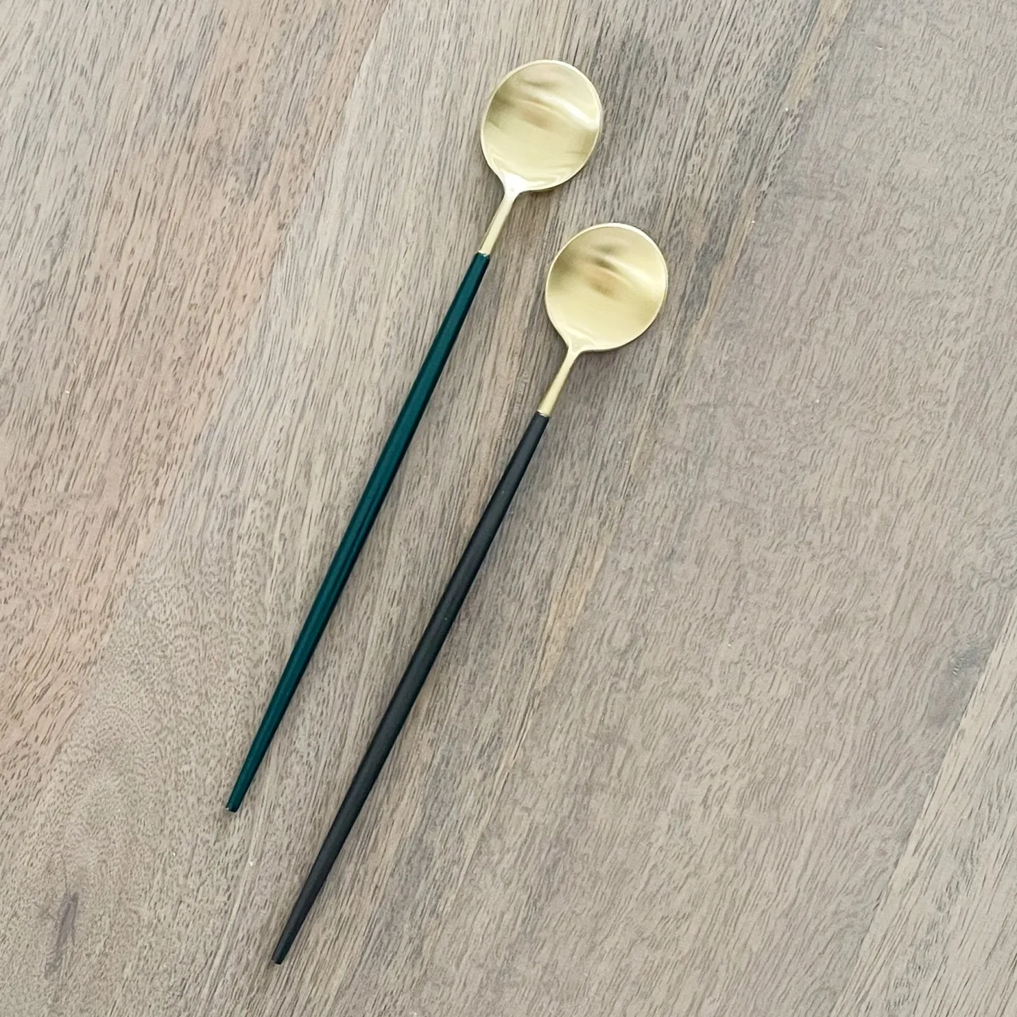 This set includes 4 long spoons from our popular Altin flatware set. Use for serving ice cream or stirring drinks. Choose from forest green or black stems.