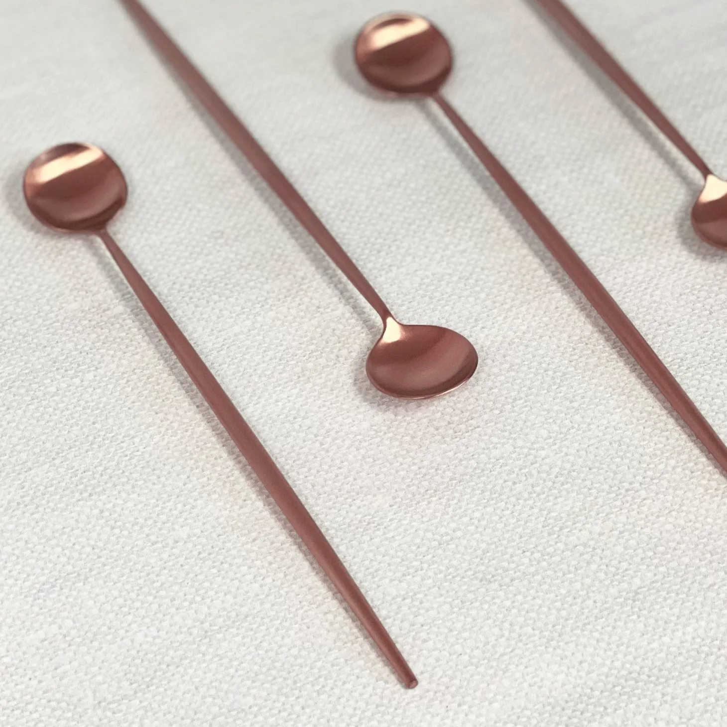 - 4 rose gold cocktail stirring spoons