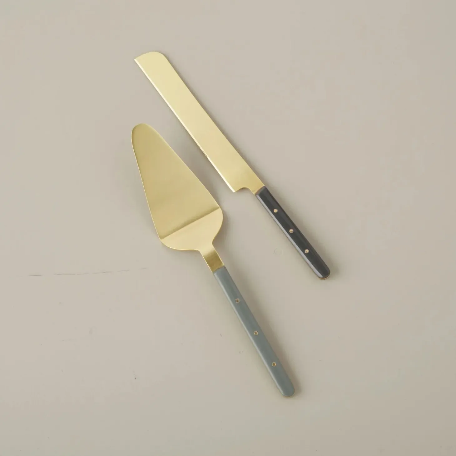 Our Bowie cake server and knife set is versatile and elevates any serving experience. The sage color tones make it extra refined.