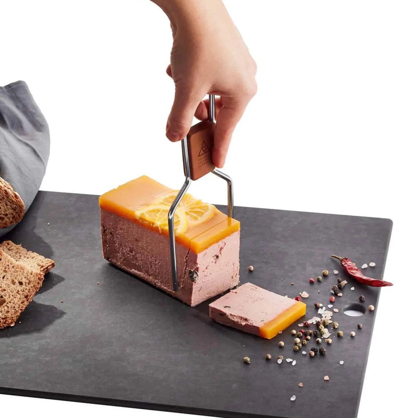 The slim stainless steel wire glides through soft textures with ease, minimizing sticking and preserving the integrity of your presentation. The wire tension is fully adjustable by repositioning the wooden insert, and replacement wires are available as needed.