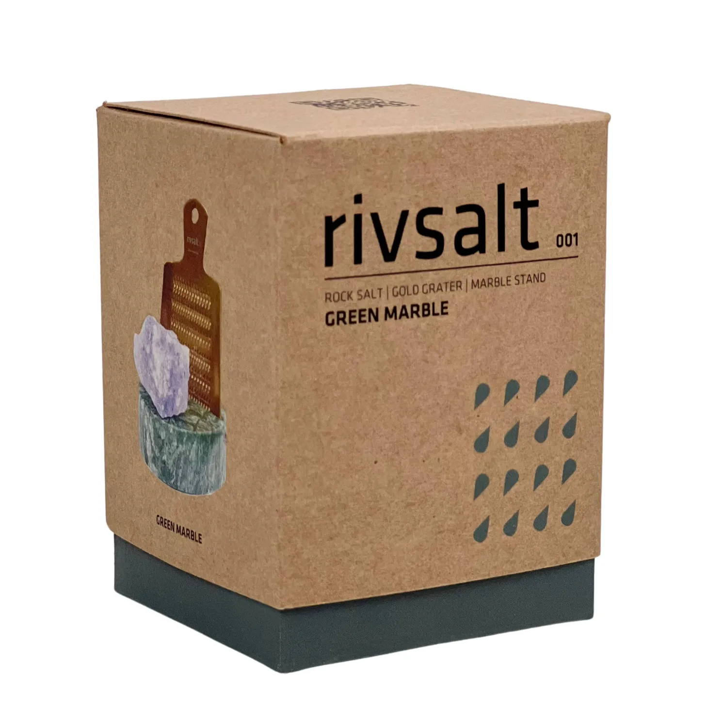 Meet GREEN MARBLE, the luxury edition to the signature 001 line. This elevated set pairs Rivsalt’s iconic functionality with refined materials, featuring a gold-coated stainless steel grater, a solid green marble stand, and an exclusive blue rock salt. Designed to be both a culinary tool and a sculptural statement, GREEN MARBLE brings quiet luxury to the table.