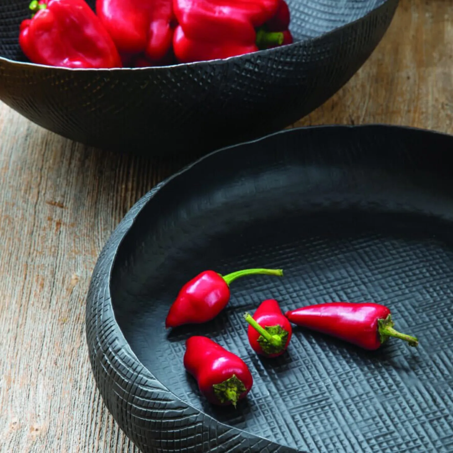 Use this artfully crafted serving bowl to store fruit on your kitchen island or to serve delicious salads. The crosshatch design and black finish make for a clean, modern look.