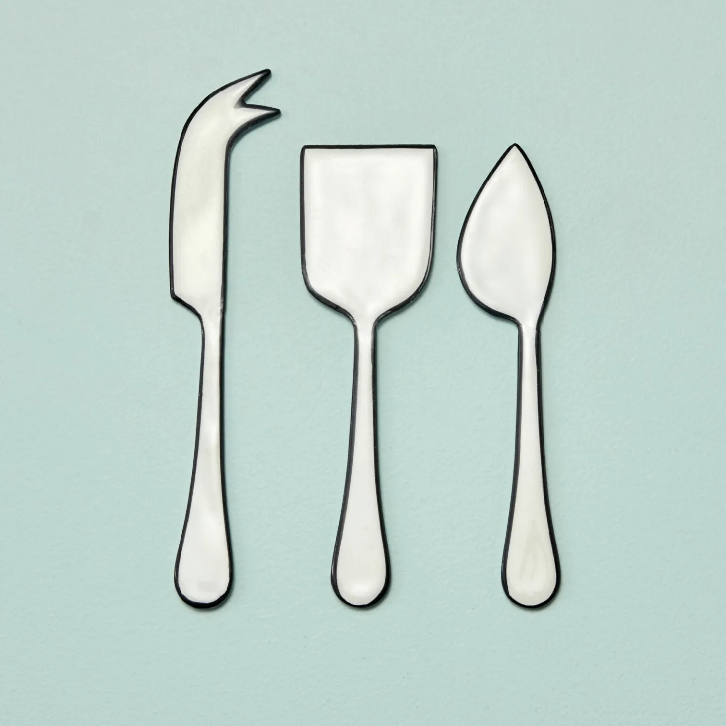 Our Hani Outline Enamel serveware collection is dressed to the nines with vintage appeal, making it easy to slice and serve your favorite cheese—from hard gouda to buttery brie—in style.