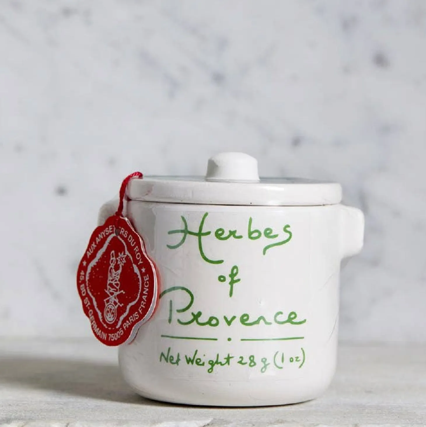 Aux Anysetiers du Roy began as a beloved restaurant on L’Île Saint-Louis near Notre-Dame, known for its Provençal cooking and grilled meats seasoned with fragrant herbs. At the end of each meal, guests were offered a keepsake: a small crock of Herbes de Provence blended by owner Louis Lombard, who was the first to include lavender flowers in the now-classic mix. That heartfelt gesture inspired the creation of an entire line of specialty foods packaged in charming clay and stoneware pots.