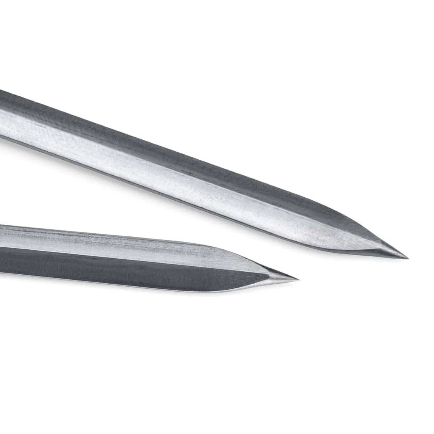 The carefully crafted skewers have a very sharp tip and a diamond-shaped cross section to facilitate skewering and to prevent the food from turning. The heads are made in an elaborate process by sand casting.