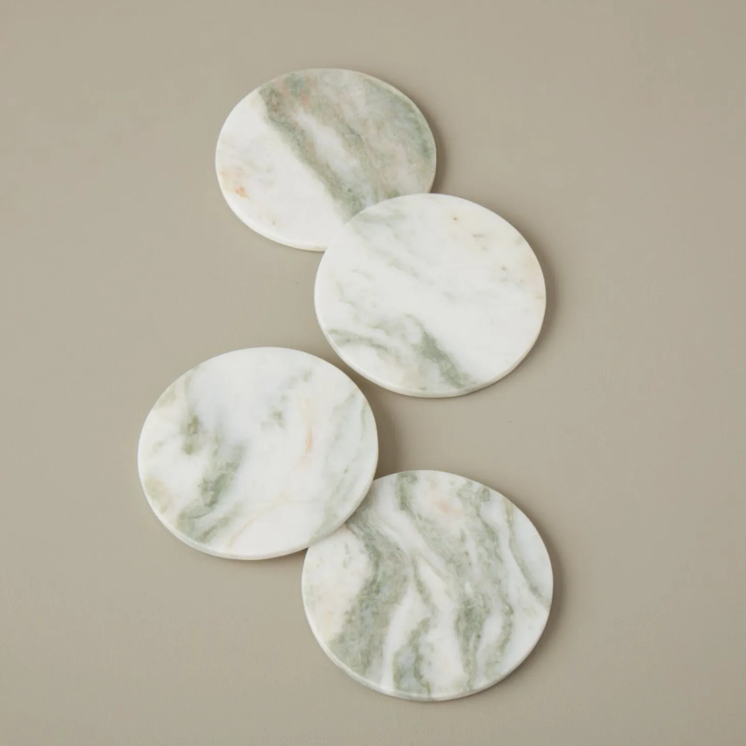 A gorgeous green stone is used to make these square coasters ready for your favorite beverage to sit atop.