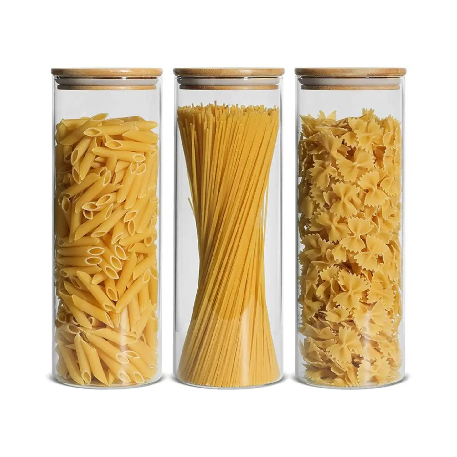 Store pasta and other dry goods in this large storage canister. The bamboo lid is fitted with a silicone lid to create an air tight seal.