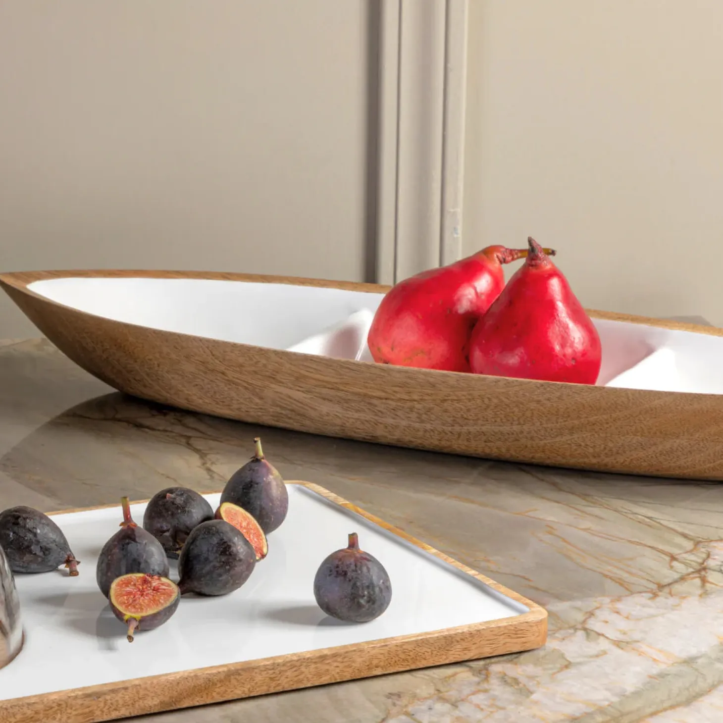 With its eye-catching shapes and sleek design, the Madras Crudité Dish is a true showstopper. Handcrafted from protected groves, each piece is uniquely infused with its own set of natural striations and subtle highlights.