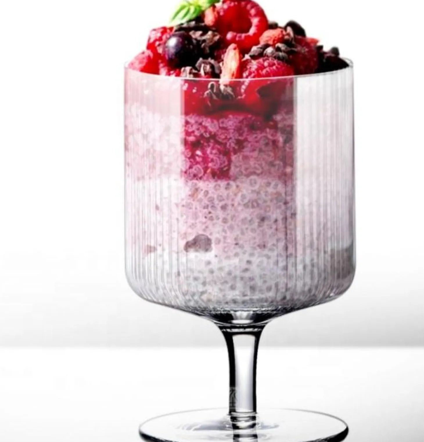 Perfect for a parfait, affogato, or layered dessert, these stemmed glass cups blend modern design with timeless appeal. The clean lines and subtle texture give them a sculptural quality that complements any tablescape — from everyday indulgence to elegant entertaining.