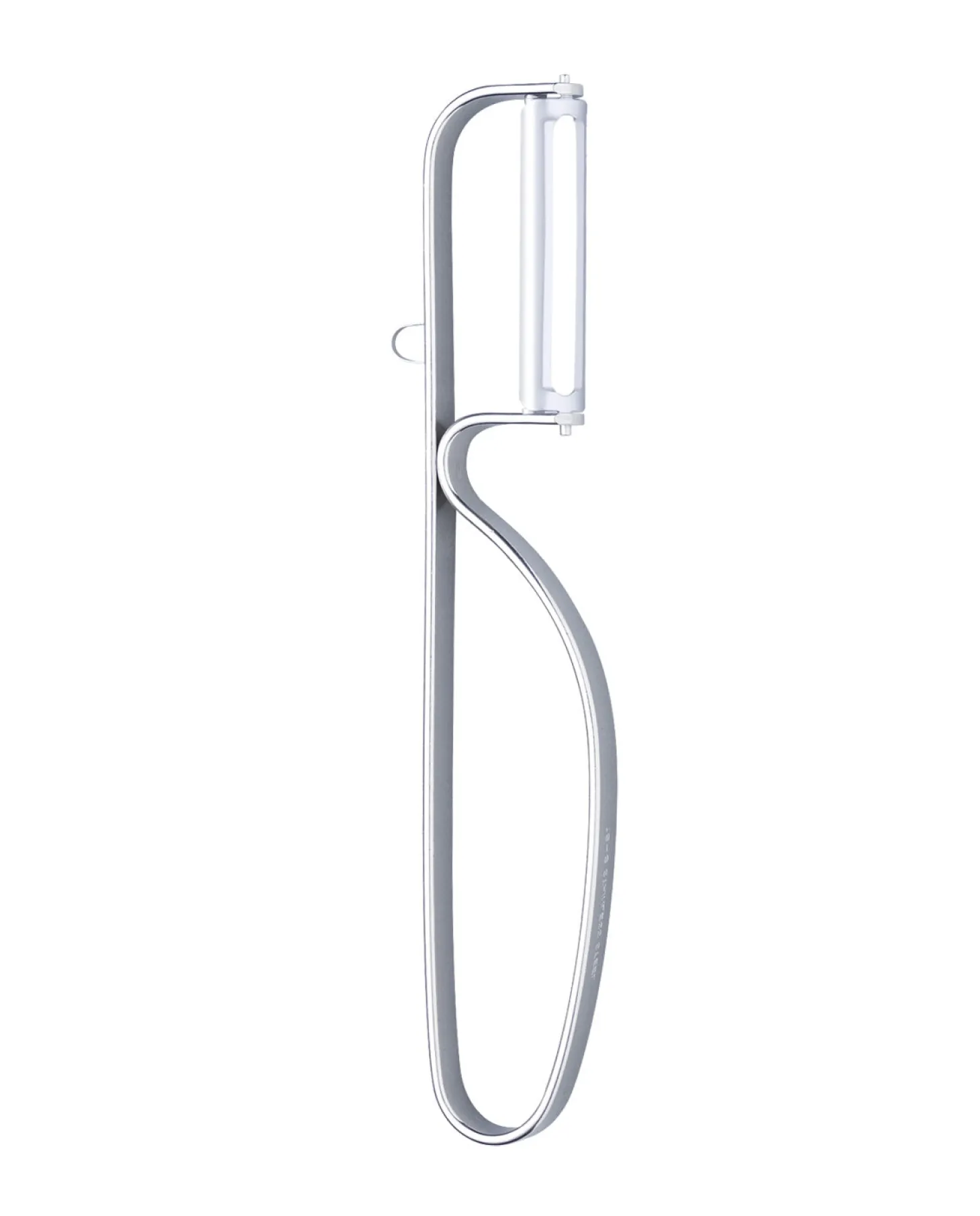The triangle Y peeler features a 50 mm wide stainless steel tempered blade that peels all kinds of vegetables. It is also perfect for fine slicing and for shredding white or red cabbage into fine strips. Stainless steel and dishwasher-safe.
