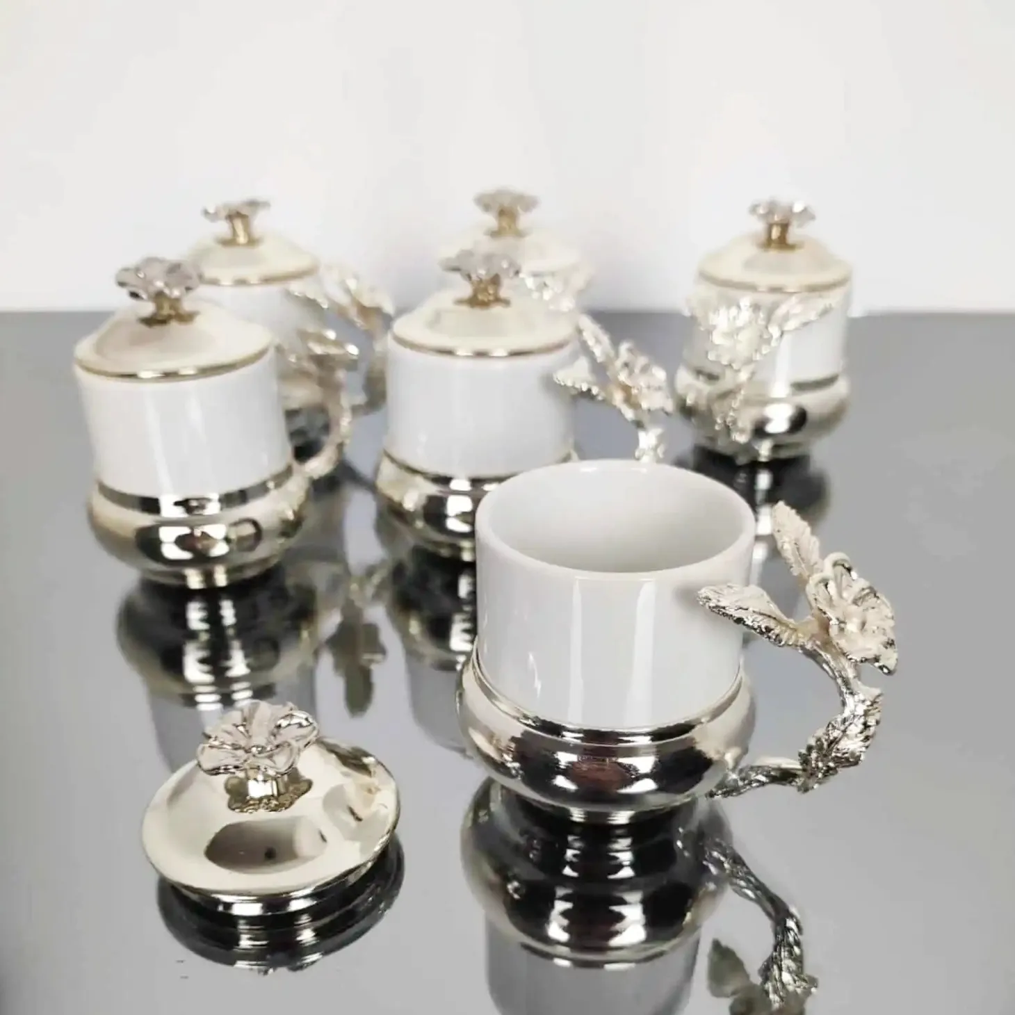 A touch of elegance makes coffee time a bit more special. Serve your guests a Turkish coffee in this stunning set with ornate lids that sit atop each vessel like a crown.