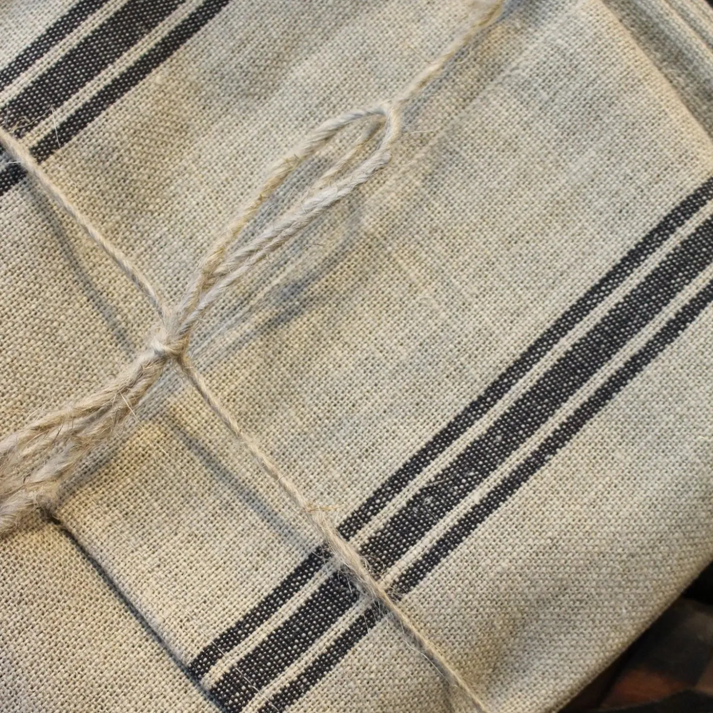 Natural linen with woven black stripe detail. Generously sized with wonderful drape.