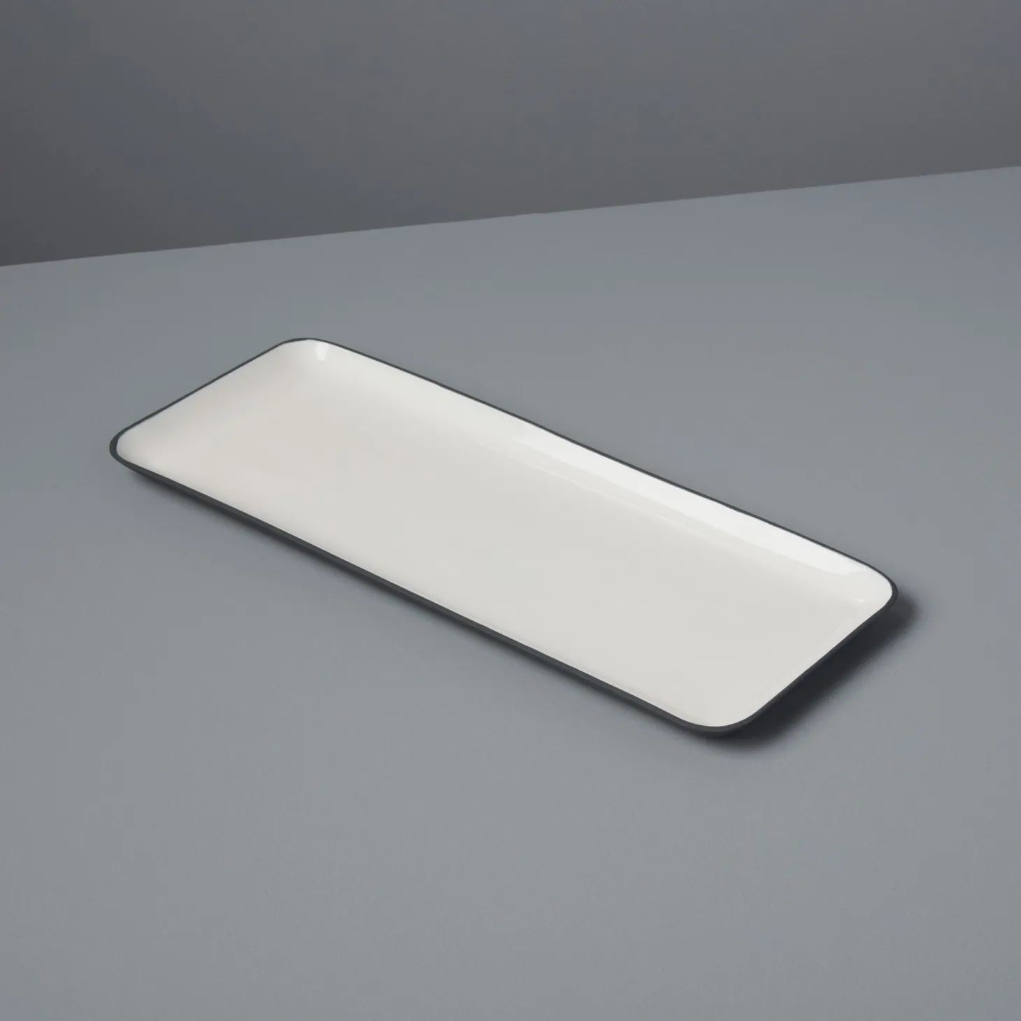 Our Small Rectangular Alto Platter can’t wait to find it’s place at the table of your next dinner party to meet your modern plating needs. This elegant piece belongs to our chic Alto Set, distinguishable by its simple clean aesthetic with textured crosshatches and sleek charcoal finishes.