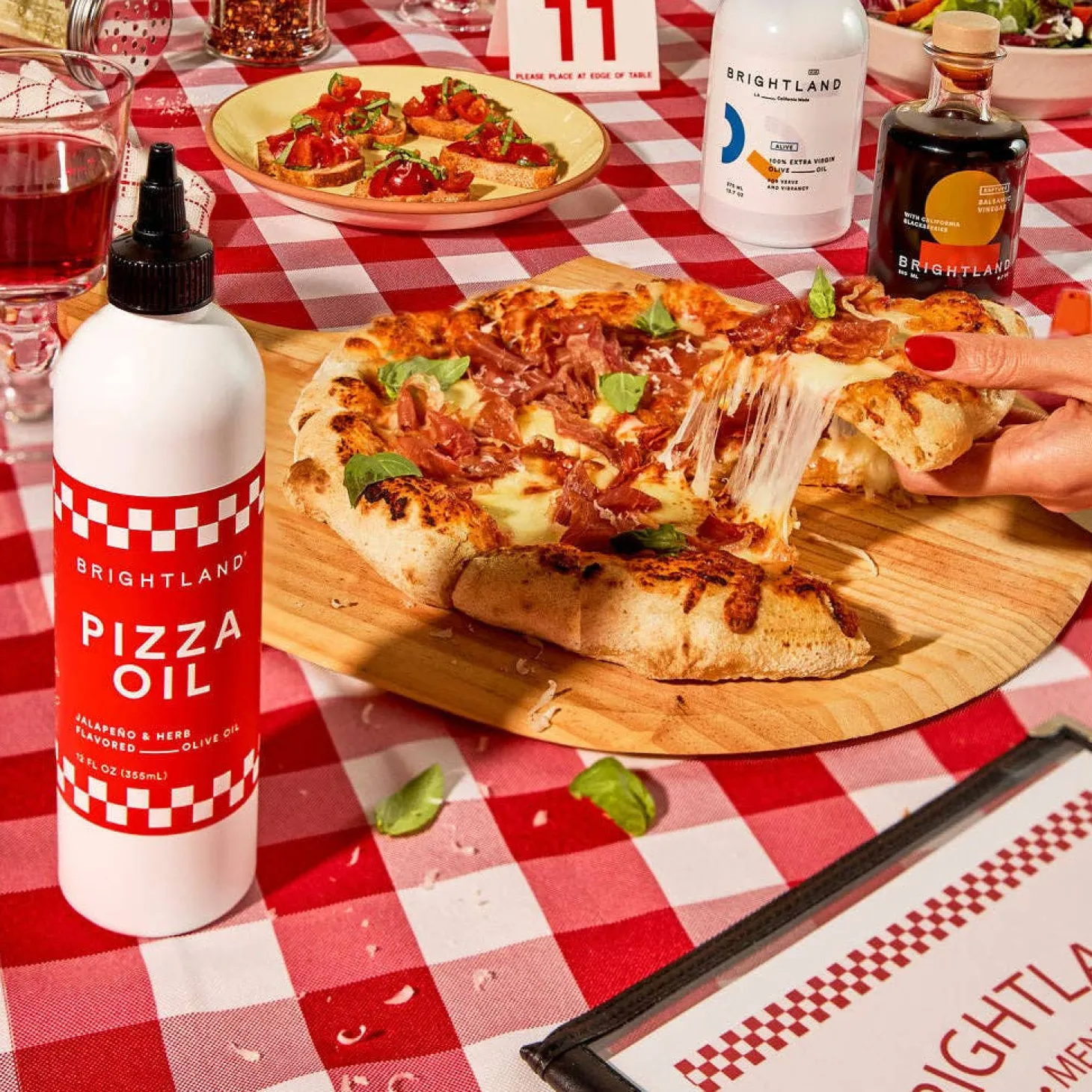Add a savory, irresistible kick to your favorite dishes with Brightland’s Pizza Oil. Made from premium cold-pressed California extra virgin olive oil and infused with a bold blend of herbs and spices, this oil instantly brings the flavor of your favorite neighborhood pizzeria to anything you drizzle it on.
