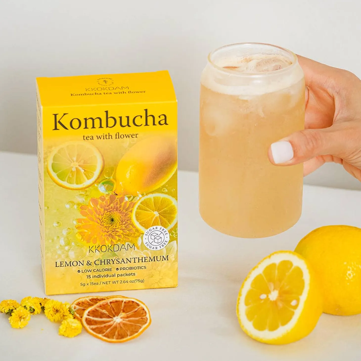A refreshing fusion of floral tea and kombucha. KKOKDAM Flower Kombucha combines fragrant blossoms, vibrant fruit, and kombucha powder into a convenient instant blend. Simply dissolve in cold water for a light, tangy, and uplifting drink — no brewing needed.