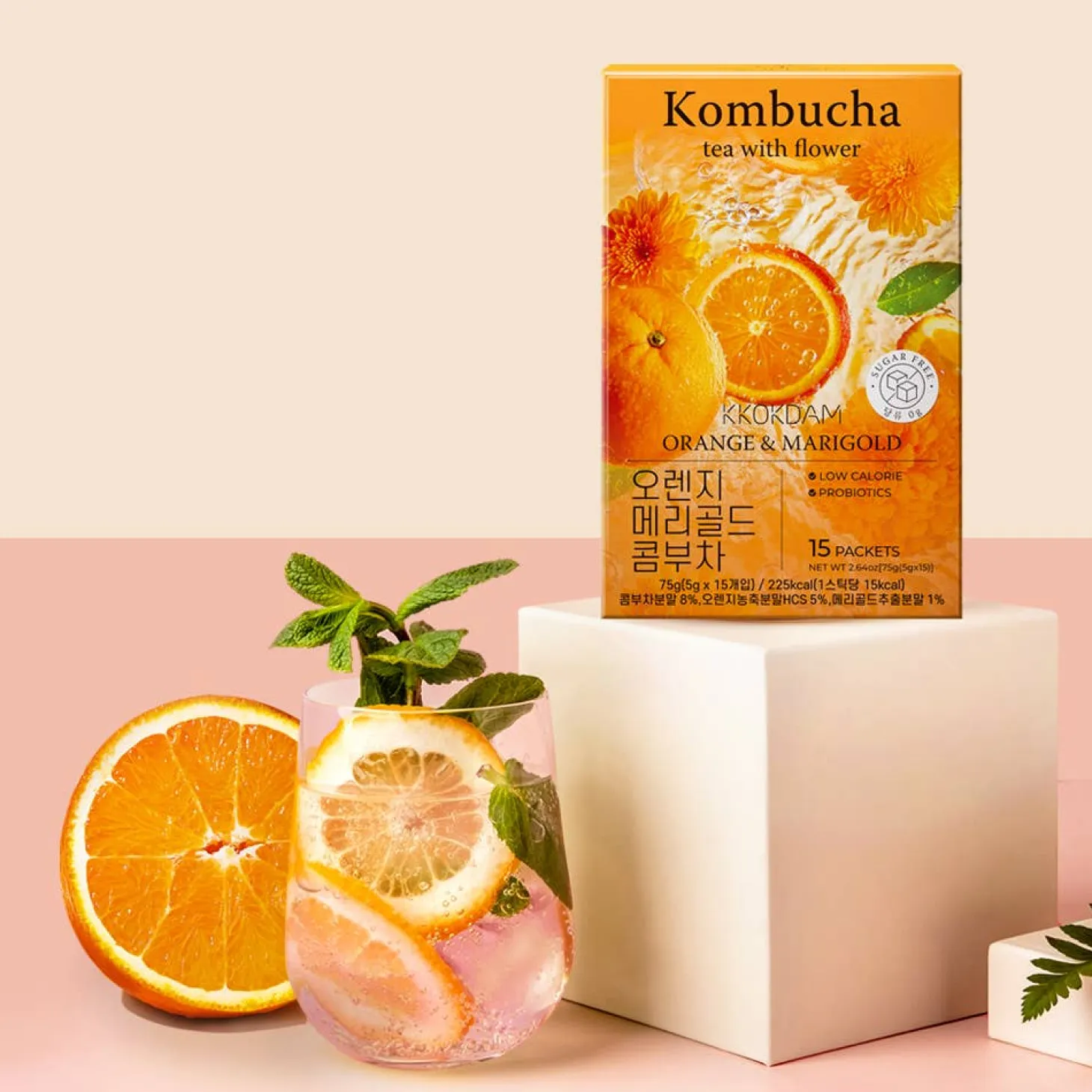 A refreshing new way to enjoy kombucha. Flower Kombucha is a powder blend of premium flower tea, fruit, and kombucha powder — dissolving easily in cold water for a delicious, revitalizing drink.