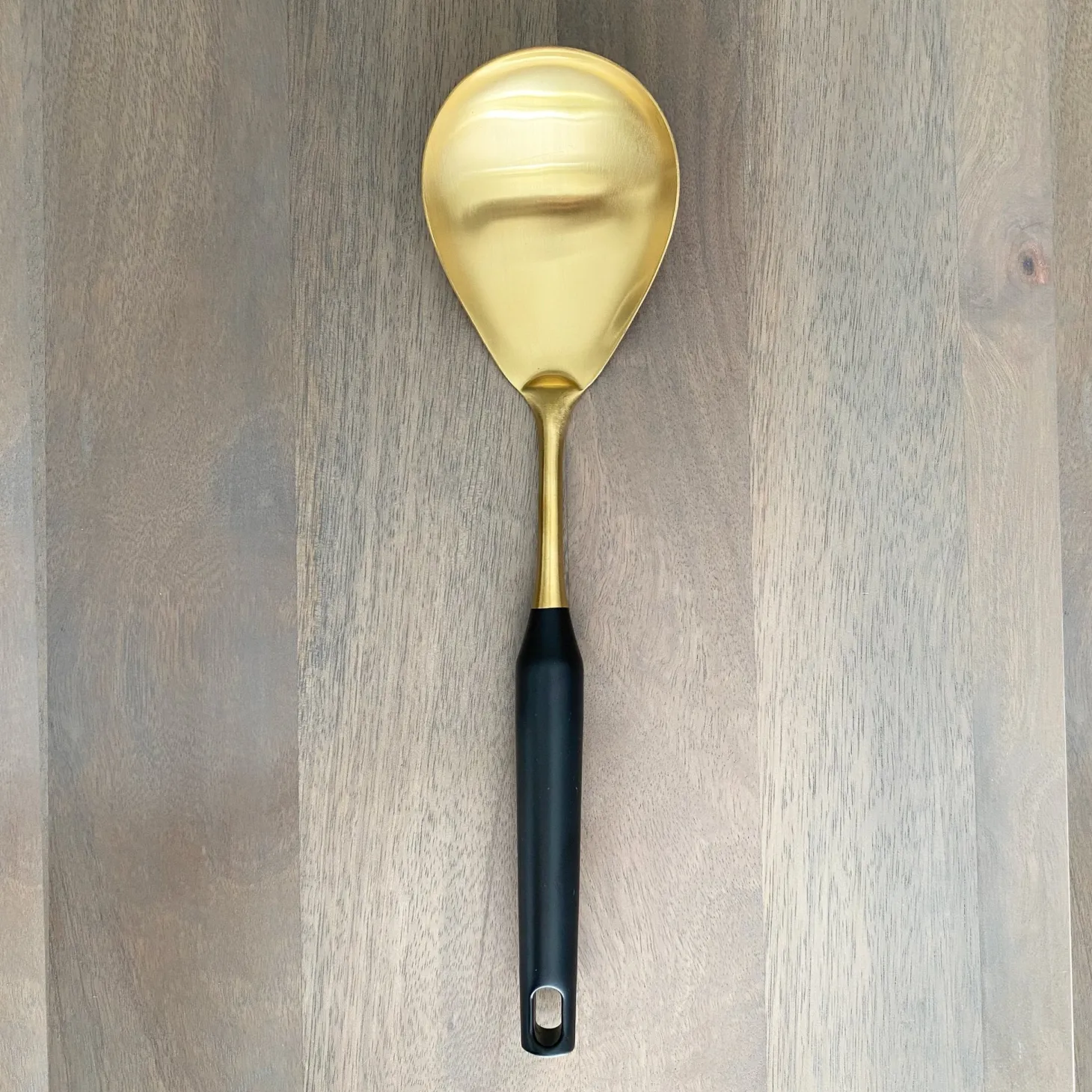 The Gordon kitchen utensils are an upgrade from your basic serving set. Pick your go-to tools or choose the entire set. Crafted of stainless steel and finished in a mirror gold with matte black handle. Use to cook and to serve.