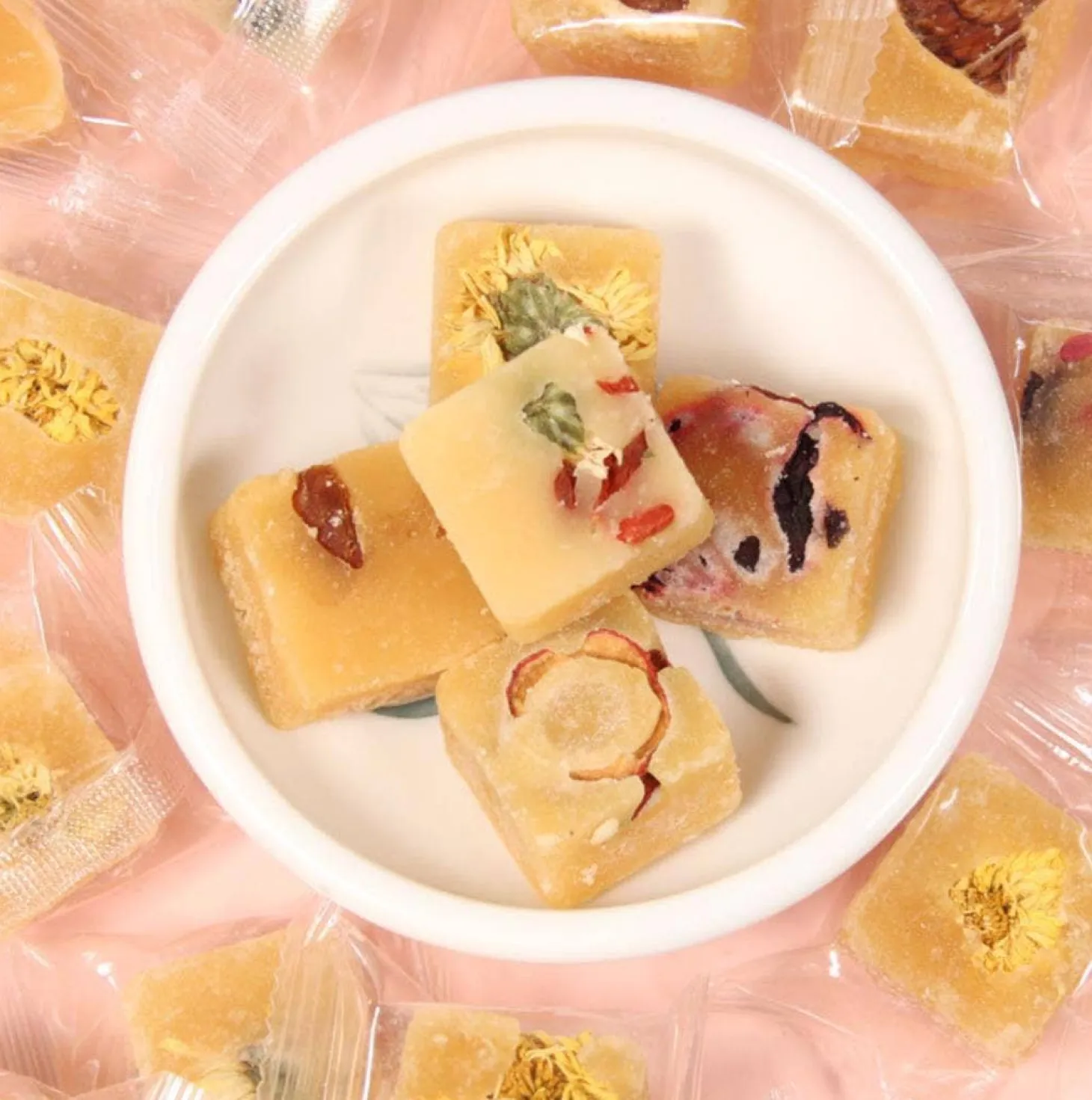 Gourmet Honey Sugar Cubes with flowers and fruit