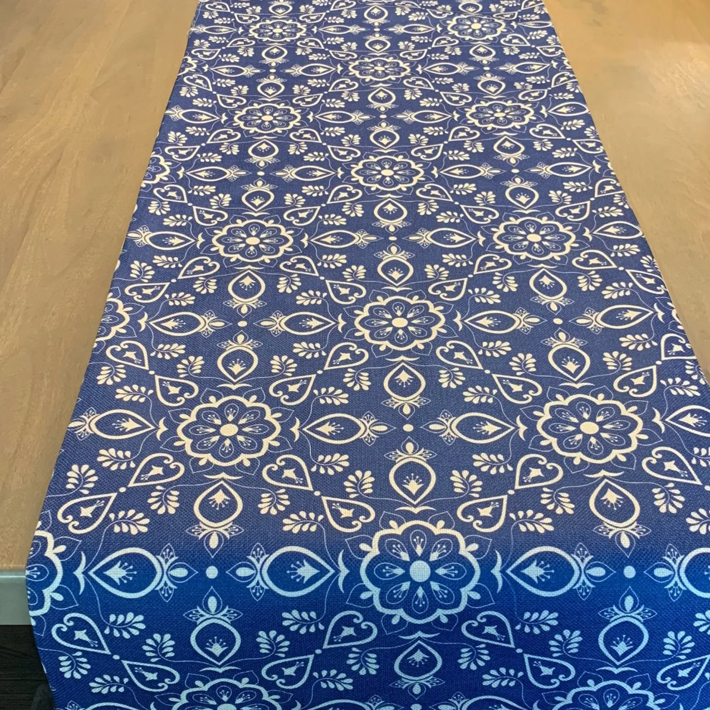 Inspired by Spanish art and architecture, this table runner is a beauty. Our Tea + Linen exclusive table runner is made of 100% linen. Comfortably fits a 8 seat tables with overhang.