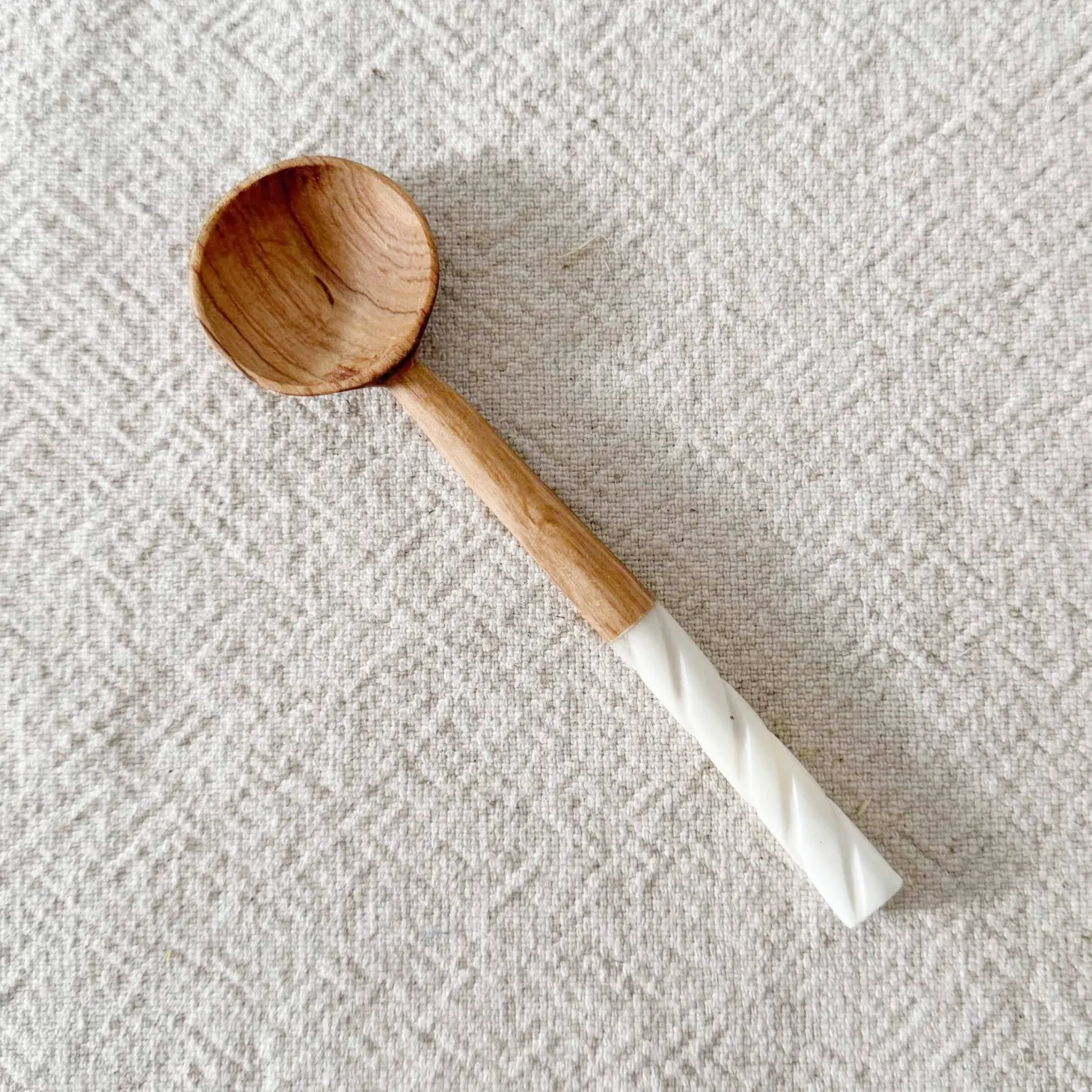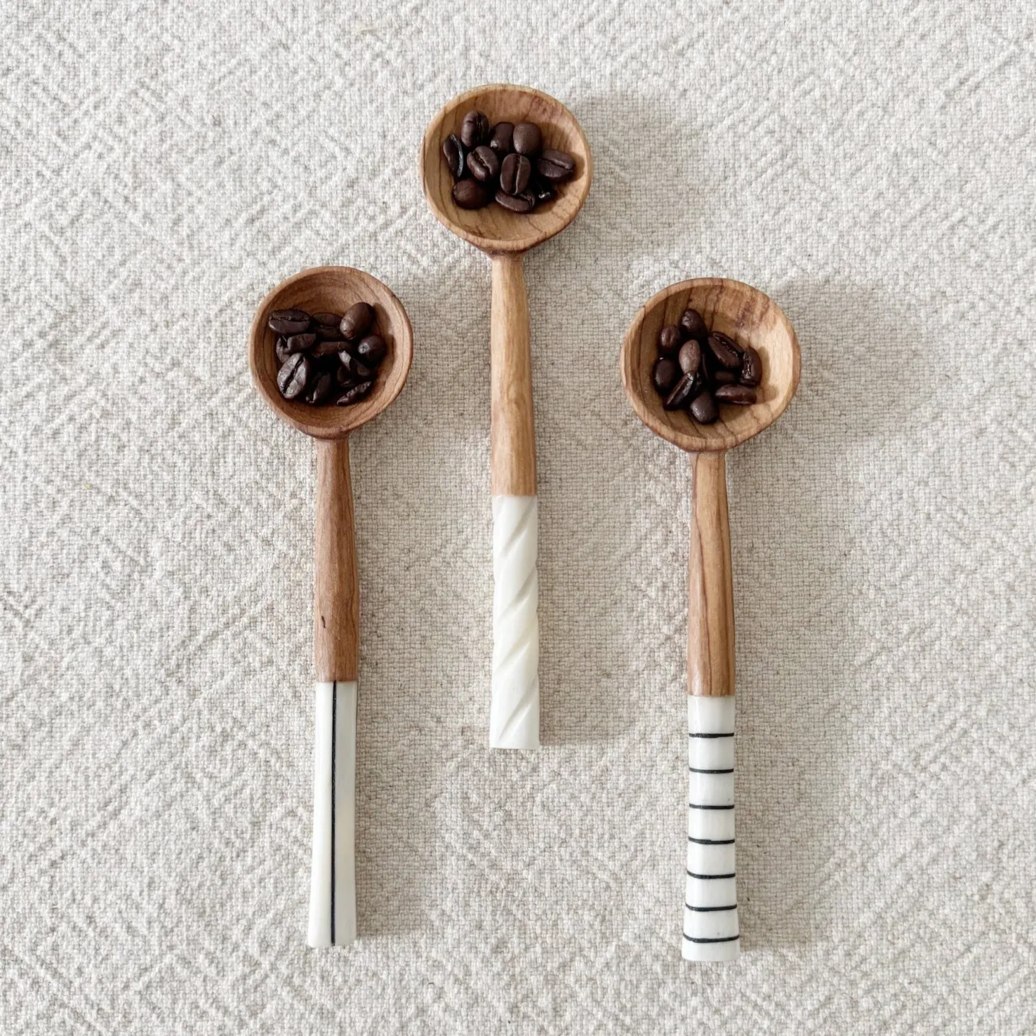 These charming olive wood spoons are hand-carved by artisans in Kenya and feature a distinctive bone handle for a touch of rustic elegance. Perfect on their own or paired with a bag of coffee or kitchen accessories, they make a thoughtful and unique gift.