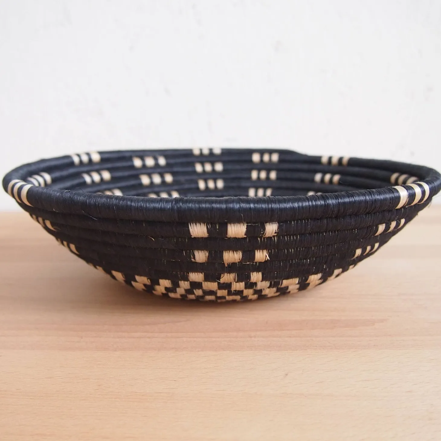 This beautiful sisal woven basket is handcrafted by skilled artisans in Gitarama, Rwanda. Measuring approximately 12″ in diameter, each basket is made by wrapping natural sisal fibers around sweetgrass — a fragrant material known for its subtle, earthy sweetness.