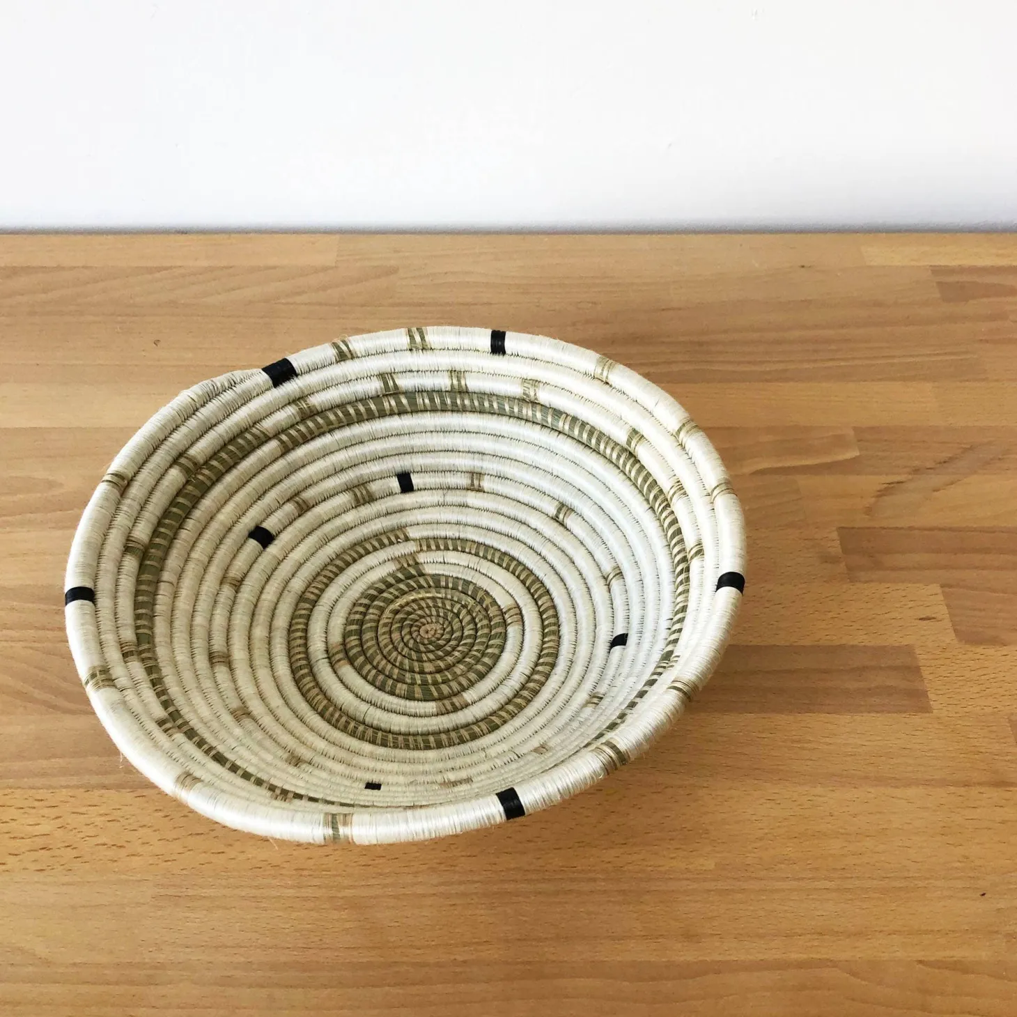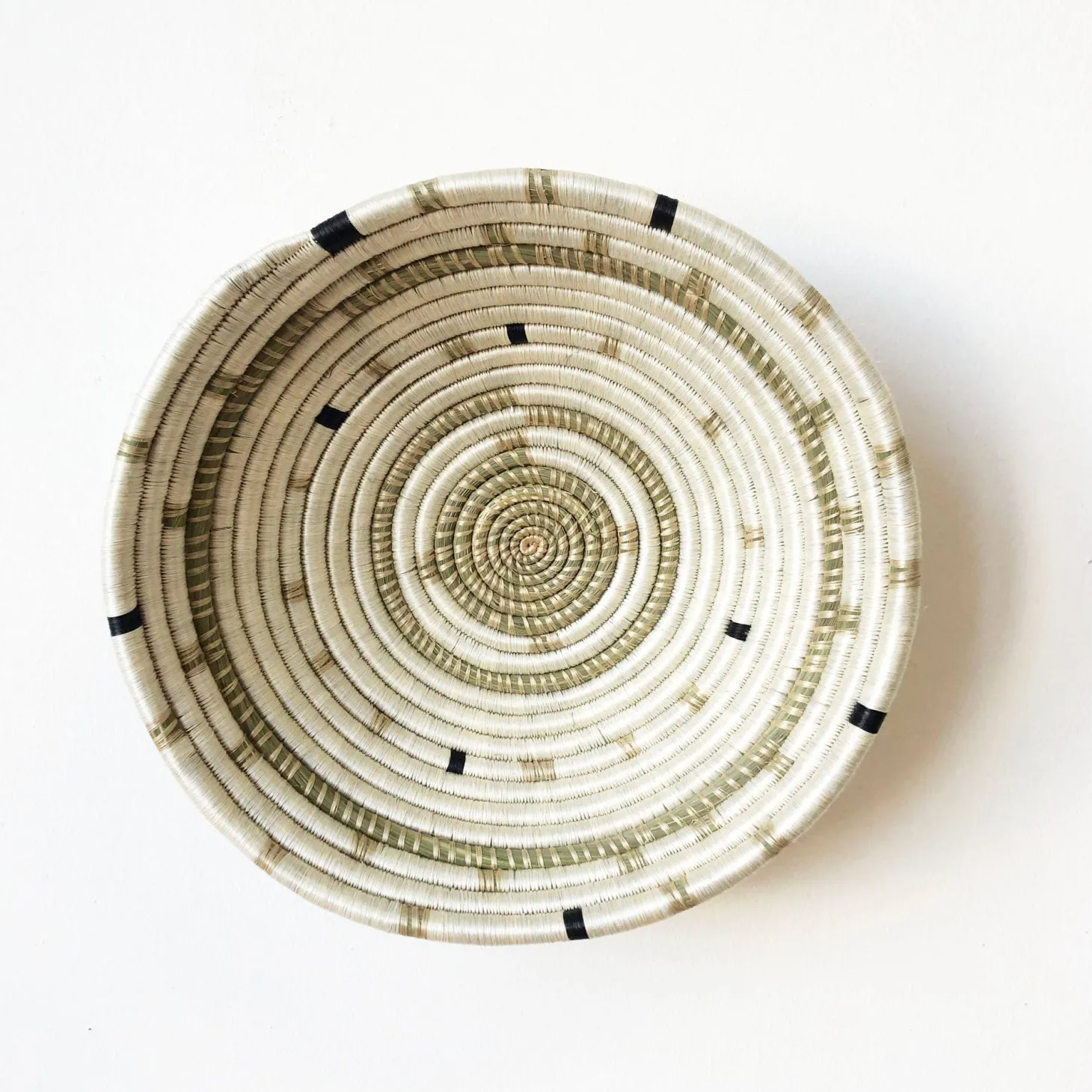 Bring artisan craftsmanship and natural beauty to your home with this handwoven sisal basket, made by skilled artisans in Gitarama, Rwanda. Measuring approximately 12″ in diameter, each basket is created by wrapping soft sisal fibers around sweetgrass, a fragrant grass with a gentle, natural sweetness.