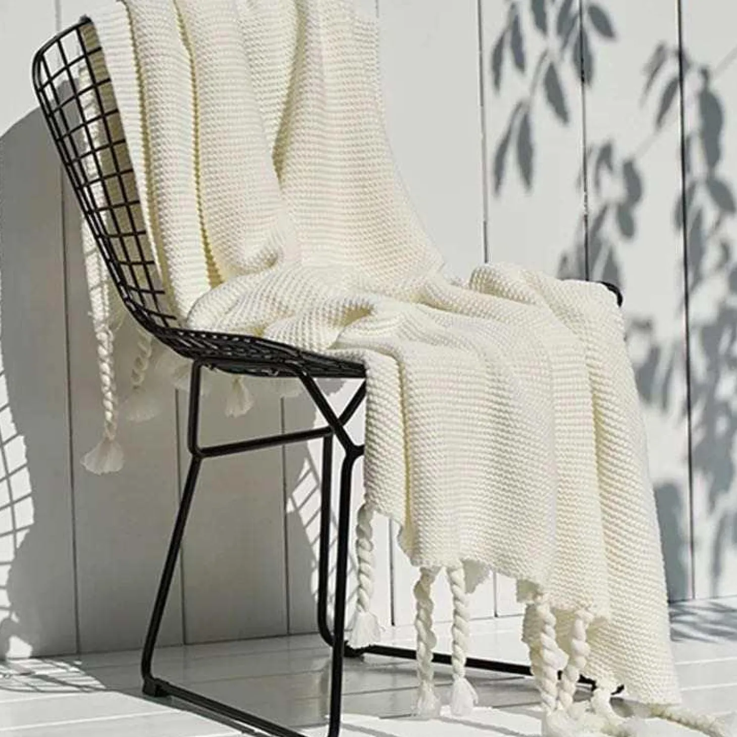 This lusciously soft knit blanket is finished with braided edging.