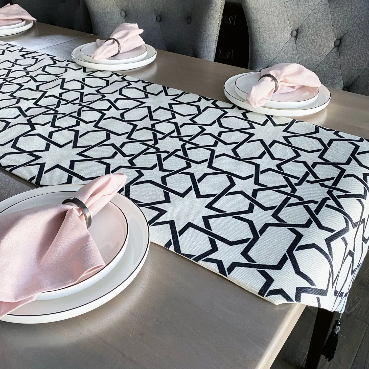 Inspired by traditional Ottoman Turkish patterns, this table runner brings a sense of history and quiet drama to the table. Bold yet timeless, it layers beautifully into both everyday settings and more considered gatherings, adding texture and depth without overpowering the space.