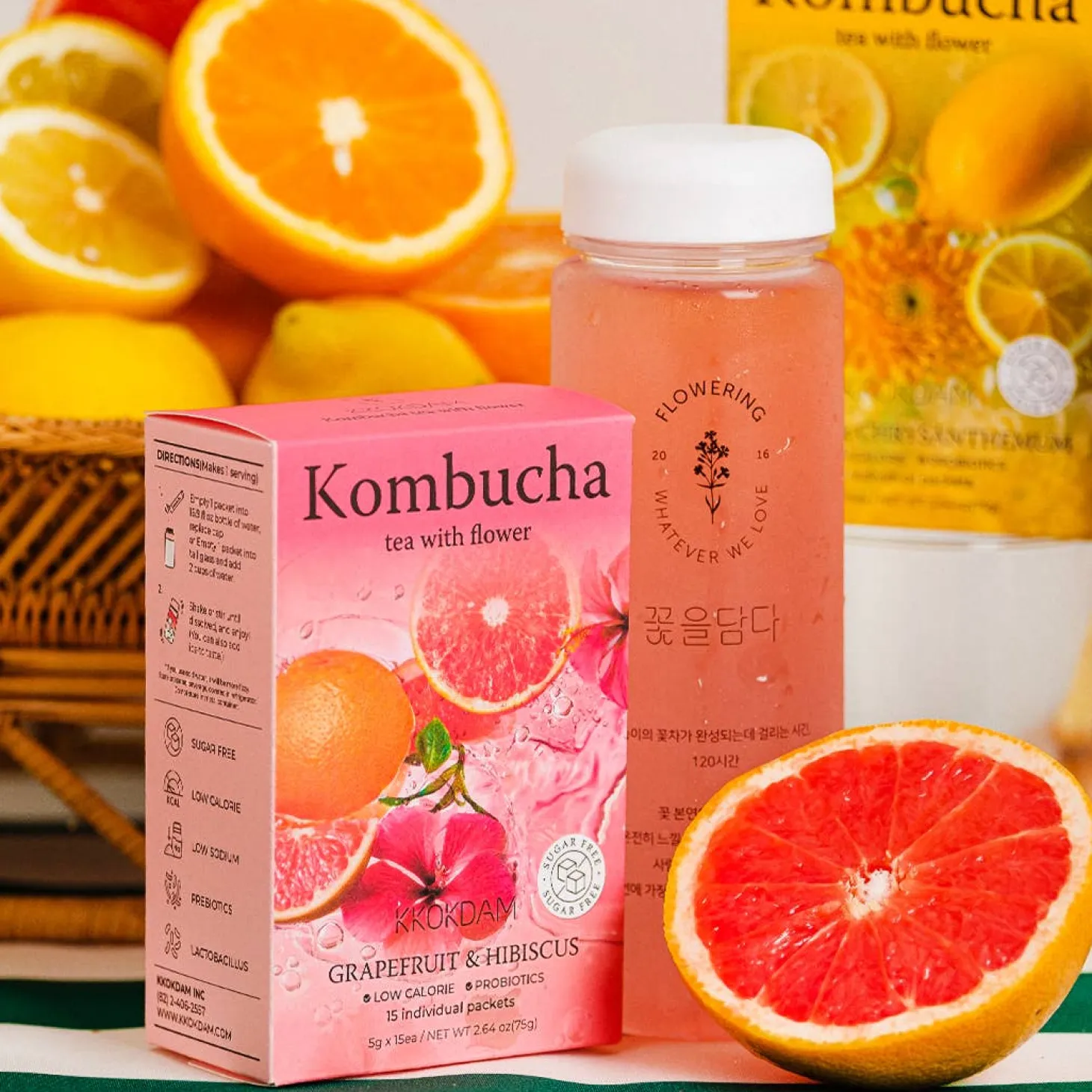 Discover the refreshing fusion of florals and fizz with KKOKDAM’s newly launched Flower Kombucha. This innovative powdered blend combines the delicate beauty of flower teas with the tangy sparkle of kombucha—perfectly portioned into 15 single-serve sachets for your convenience.