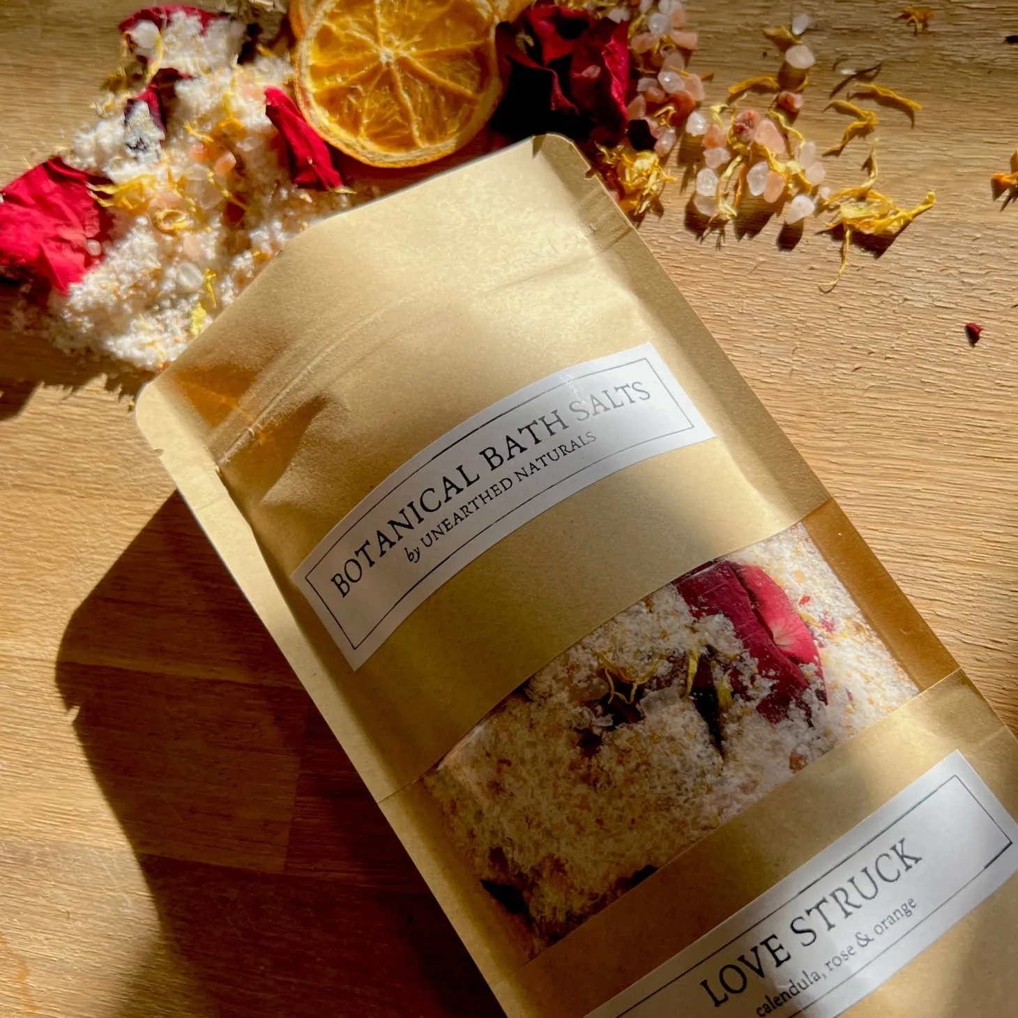 Fall in love with self-care. Love Struck is a luxurious pink bath soak infused with Himalayan pink salt, Epsom salts, and baking soda to help detoxify, soften the skin, and ease muscle tension. Each 10 oz bag provides enough soak for approximately 3 to 5 relaxing baths.