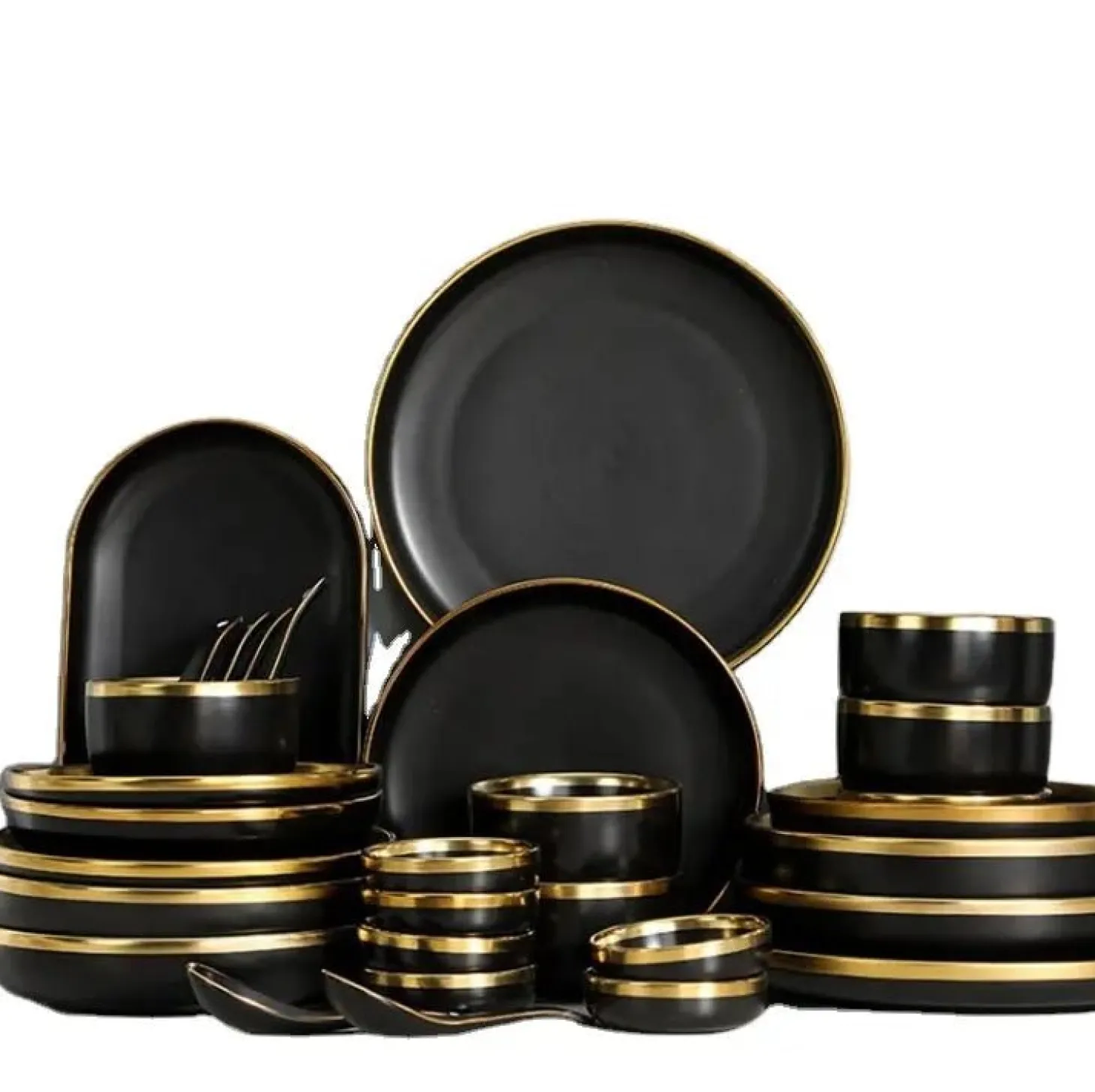 With just the right amount of glam, the Metallic Rim Dinnerware Collection is a mix of simplicity and style. Made of porcelain with a gold rim and bright white or black finish.