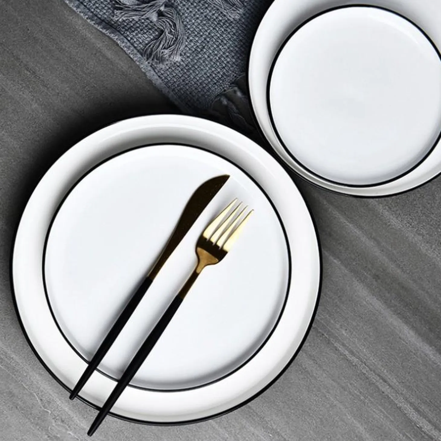 A simple plate with clean lines is finished with a modern black rim. The Milo 9.5″ plate is nicely sized for salads, appetizers or plating sandwiches.