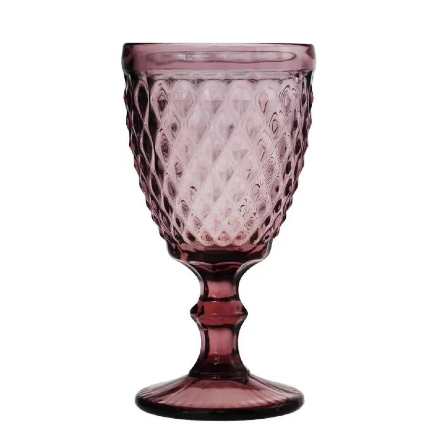 Inspired by 20th century pressed glass, our Mira water goblets feature traditional diamond facets. Use as part of your table setting to add color and texture.