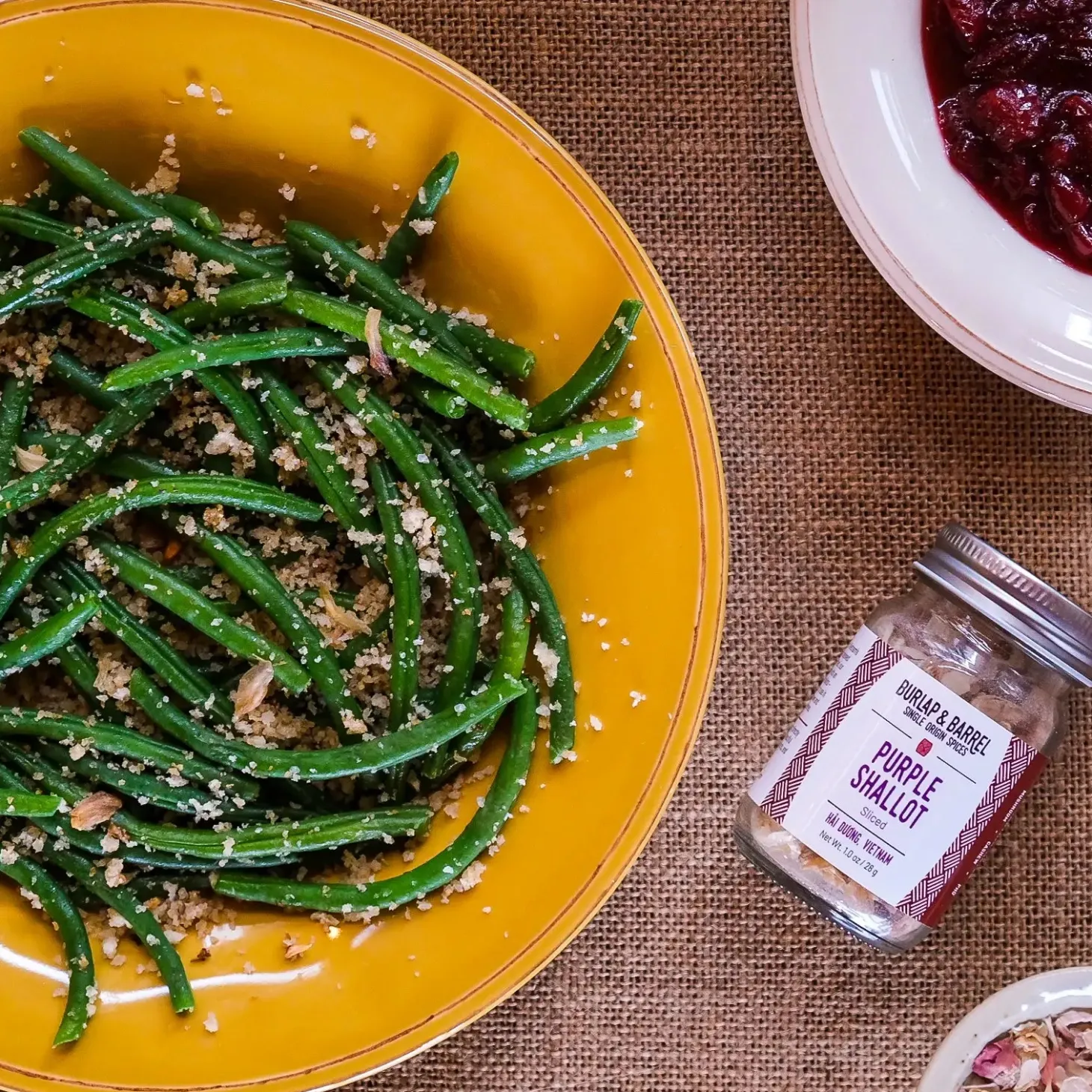 These Purple Shallots are dried, not fried, delivering deep umami and delicate allium sweetness that enhances a wide range of dishes—from rice and noodles to stews and braises. They also make a playful, crispy garnish for vegetables (hello, green beans), rice, or any dish that benefits from fresh shallots, with none of the prep.