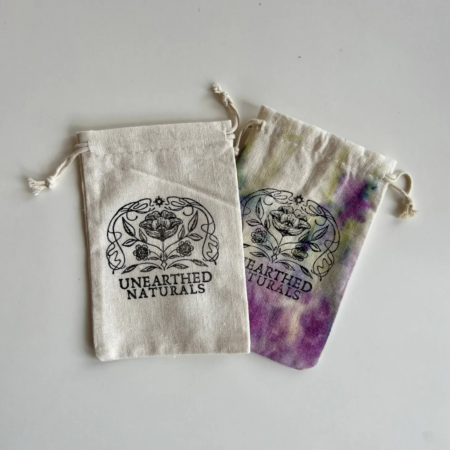 Elevate your bath ritual with our eco-conscious cotton muslin soak bags, the perfect companion for botanical bath salts and herbal blends. Each 4×6 inch bag is hand-stamped with the Unearthed Naturals logo and crafted from thick, durable cotton with a double-drawstring closure for easy use and a secure seal.