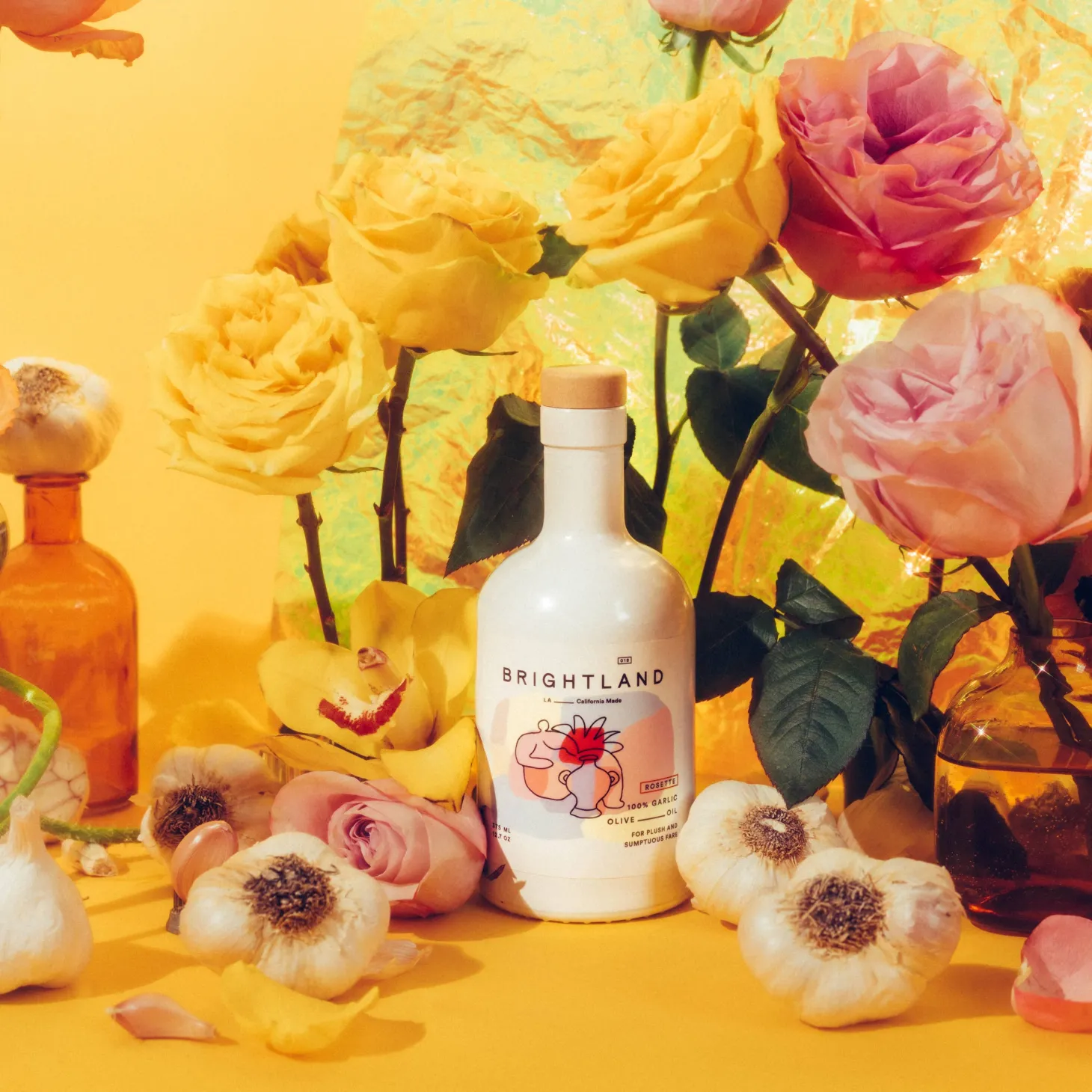 Born in the golden state of California, Brightland’s ROSETTE is a custom-blended garlic olive oil crafted for rich, savory cooking. Made from premium olives milled within hours of harvest and infused with aromatic garlic extract, ROSETTE delivers a zesty, rounded flavor that adds depth to everything from pastas and vegetables to pizzas and roasted meats.
