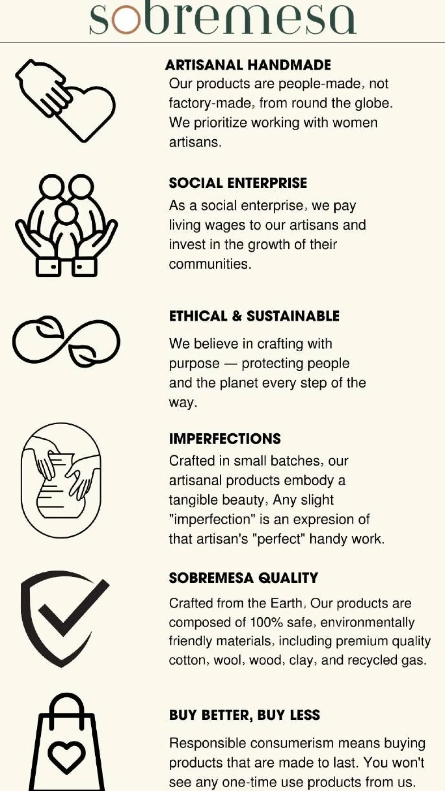 We partner with global artisans through fair trade practices, environmental stewardship, and ethical sourcing.