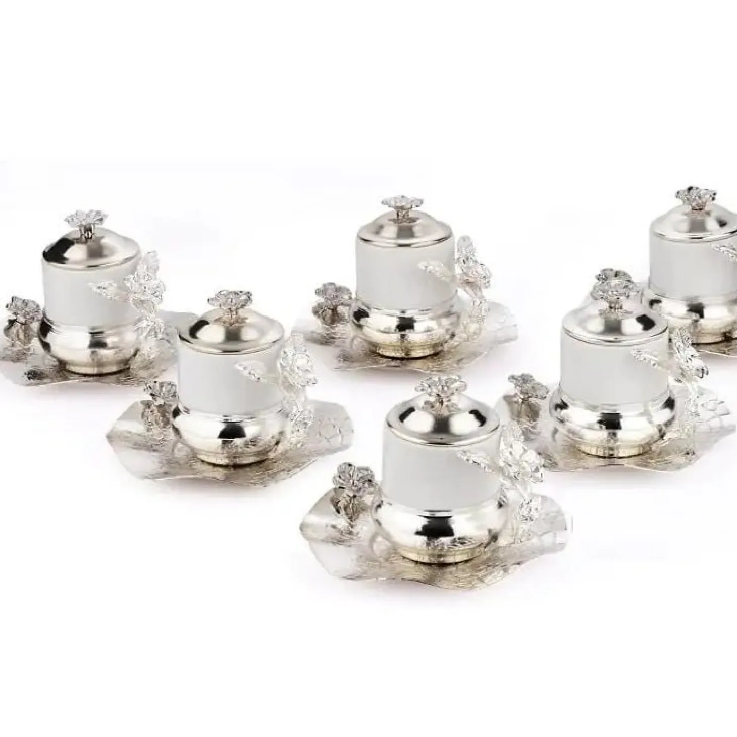 A touch of elegance makes coffee time a bit more special. Serve your guests a Turkish coffee in this stunning set with ornate lids that sit atop each vessel like a crown.