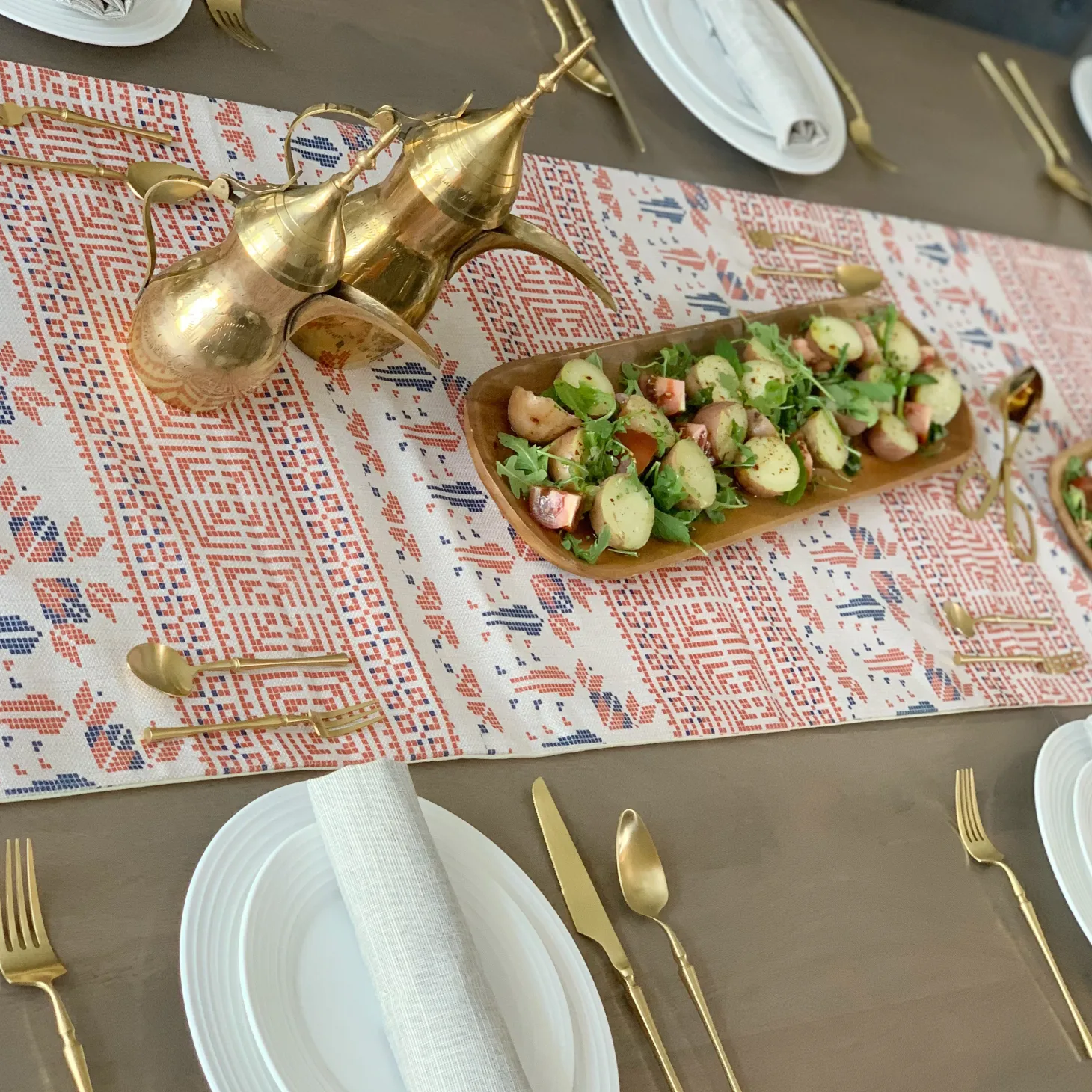 This table runner carries that story forward through a printed interpretation of traditional embroidery motifs, thoughtfully rendered on durable linen. Designed for everyday living as much as meaningful gatherings, it is machine washable, bringing modern ease to a storied tablescape.