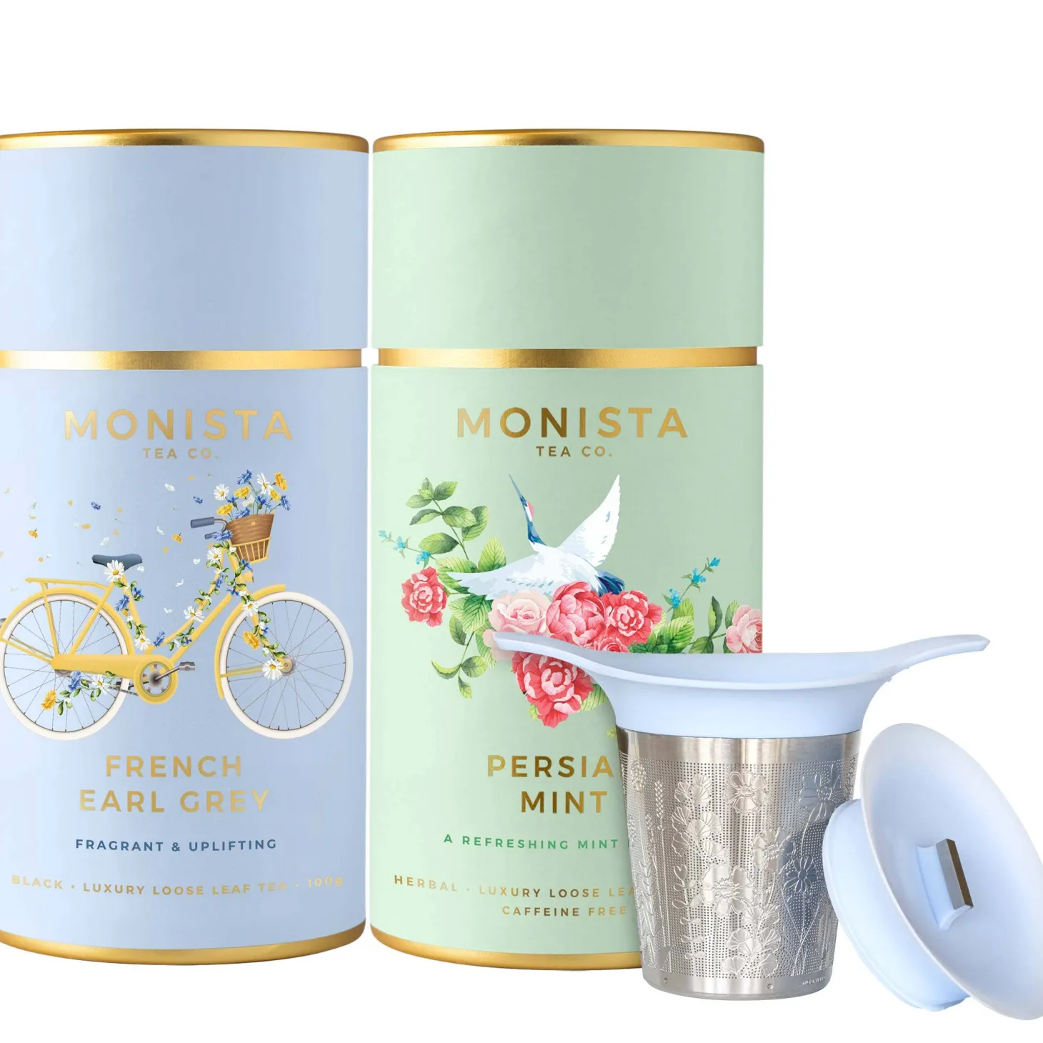 Two premium Monista loose-leaf tea canisters
