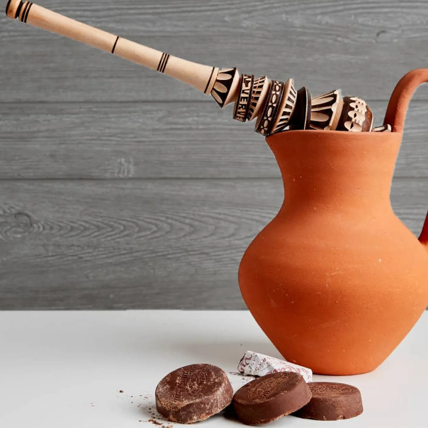 To enjoy, mix a disc with warm milk and froth using a traditional molinillo for an authentic Mexican experience. (Jug and molinillo not included.)
