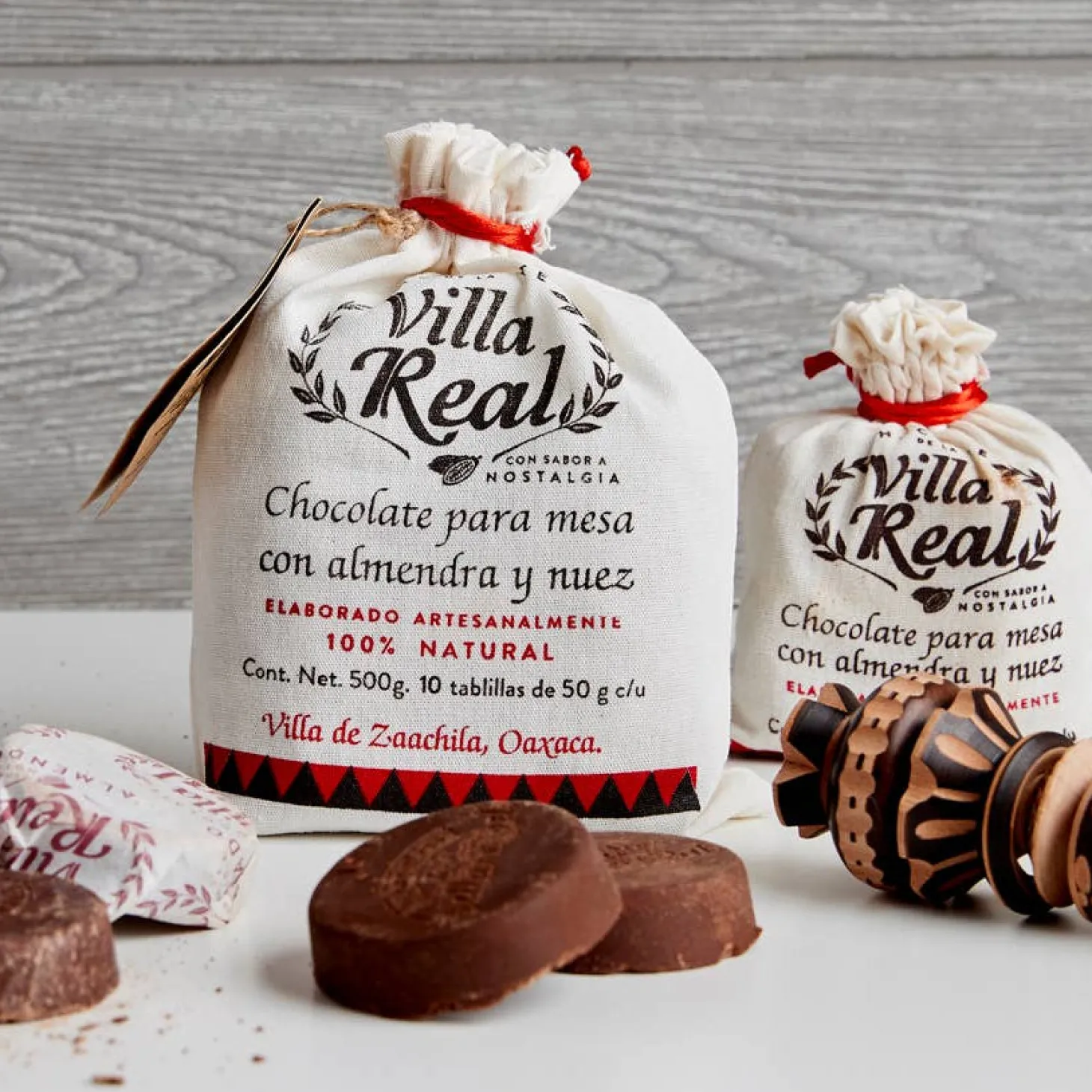 Crafted with care in Oaxaca, Villa Real chocolate is made from simple, high-quality ingredients: cocoa butter, sugar, almonds, and a blend of nuts and spices. The result is a rich, aromatic hot chocolate—deeply traditional and incredibly delicious.